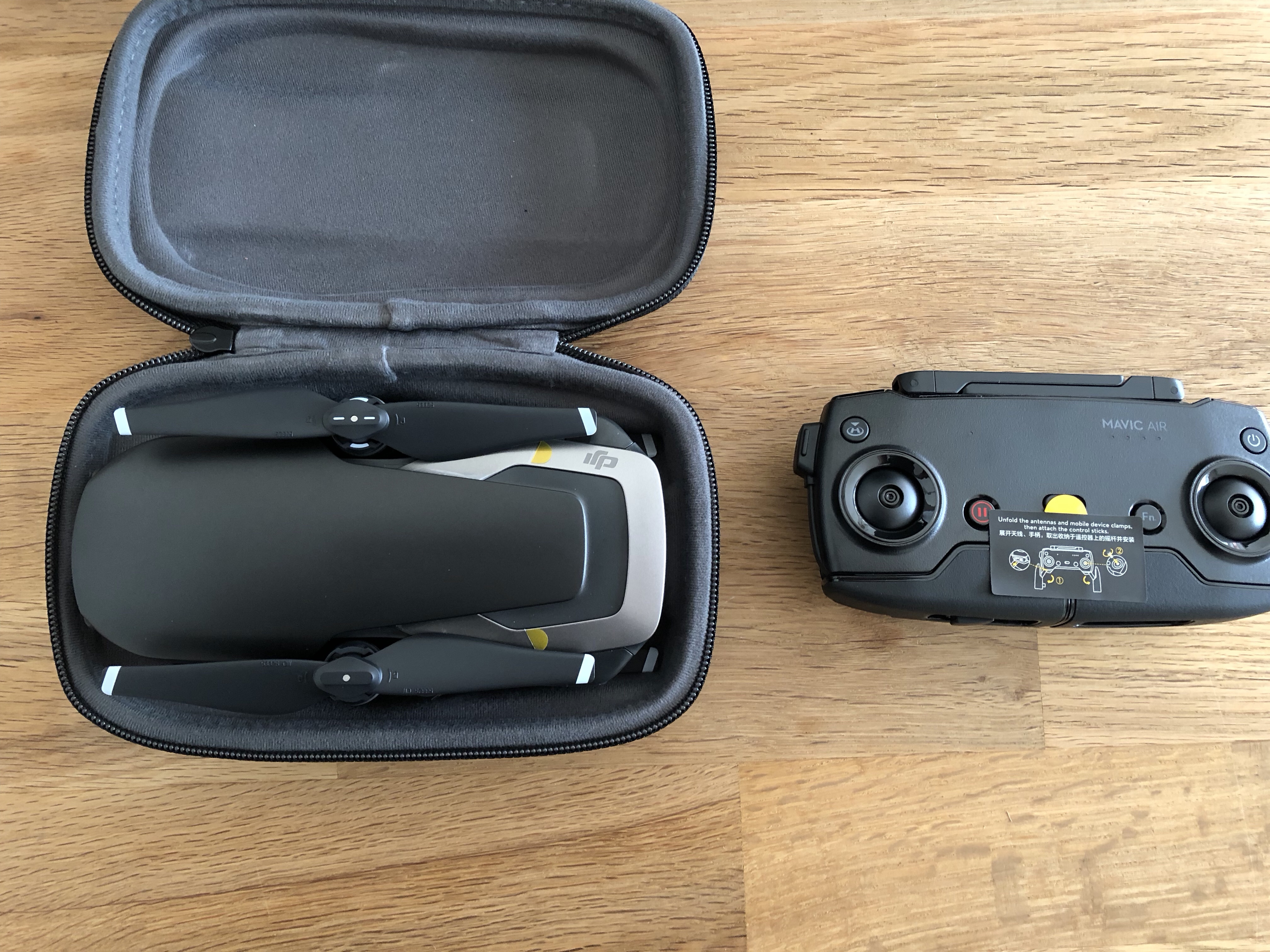 Indirekt durch meinen Arbeitgeber kam ich jetzt recht günstig an eine DJI Mavic Air Fly more Combo. Also die Drohne samt Fernsteuerung, 2 weiteren Akkus und einer Transport-Tasche und noch allerlei Klein-Zubehör.