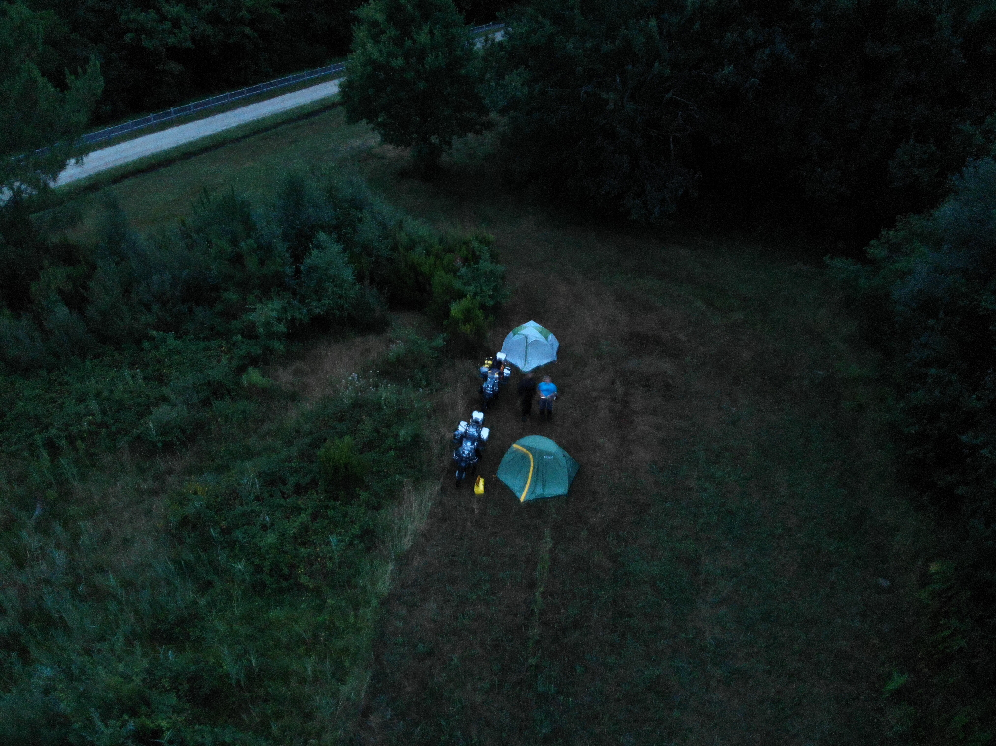 Also sind wir von der Strasse 100 Meter in Richtung Pinienwald abgebogen und haben dort unsere Zelte aufgeschlagen. War zwar etwas feucht und dadurch mit recht vielen Moskitos, aber dafür sehr ruhig und eine erholsame Nacht.