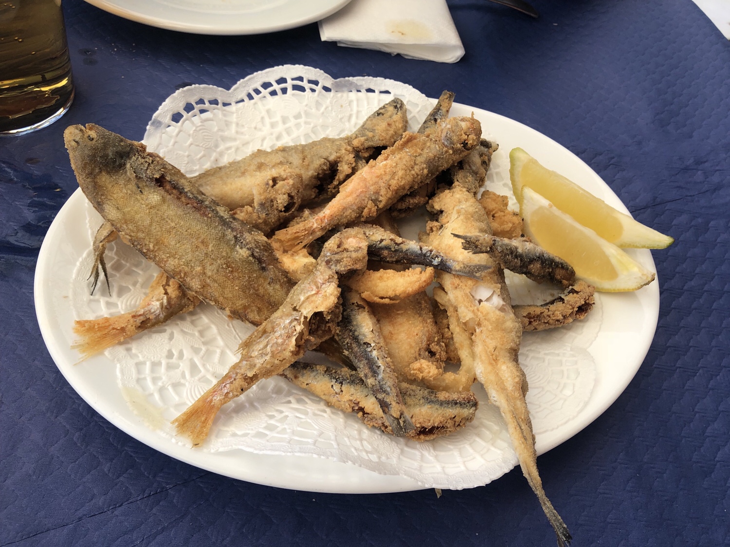 Mittags gab es Pulpo a la plancha und einen gemischten Teller frittierte Fische und…